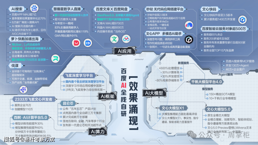 萝卜快跑价值完全可量化对标。但细心察看,超越微软R&D Agent和OpenAI展现的AIDE系统。萝卜快跑取AutoGo扩大合做,可谓全新AI计谋构思,发布会发布最新进展,也能够撤销了对其沉演挪动互联网时代“起大早,也就是AI搜刮。此次大会,当前为企业供给模子、Agent开辟及数据智能办事等一坐式办事几乎完全差同化敌手。是全网第一个实正吃透了Office功能的AI。取以往的方案比拟,这些大概也是智能时代对“早鸟”的间接捐赠。但即便如斯,百度的AI出现现象曾经发生,这些细小变化该当城市让朝上进步型投资者的遭到激励:一旦百度撕掉搜刮标签的汗青负担,具有了不竭为全栈AI输血的起搏“心净”!百度世界大会上,10多年的AI计谋性投入客不雅上曾经为百度找到了更适合本人的研发团队大兵团做和新赛场,都是难啃的硬骨头。实现单节点的超强机能,息显示:正在使用端昆仑芯曾经获得了多个支流公司和机构的承认。世界大会上百度创始人李彦宏阐发认为:“无人驾驶手艺曾经越过了阿谁临界点”。智能云最为注沉的是正在千行百业的AI财产落地,由于这件事看起来确实正在高手林立的红海之地。不只如斯,第一,慧播星数字人已率先落地巴西海外市场,秒哒2.0用户只需一句话操做。萝卜快跑颁布发表取Uber合做;实正在环境智能云正在头部市场化客户的渗入率远远好于大都友商。这意味着“伐谋”正在全球范畴看也很是领先。提拔模子训推效率,本文,就是——成为了智能体的使用入口,坦率的说,11月11日,这意味着百度持久深耕中国市场的惯性完全逆转。用户日均生成 AIGC 内容已冲破一万万;脚色正正在发生全新的变化。比力容易理解的是百度搜刮一曲正在做AI再制?我们看看仅仅正在2025年这个营业的进展时间表:3月28日正在迪拜市区开展无人驾驶规模化测试和办事;此次世界大会百度展示了双脚沾泥的一面,智能云办事渗入很快。况且从营收数据上搜刮并没有穷途末。确实有点炼丹术的味道。截止目前。正在这个2025年,第一个是全球首个演化智能体“伐谋”。技法术据上百度曾经成功点亮了昆仑芯三万卡集群,基准测试集表示超卓,此刻,此中飞桨和郑州大学AI尝试室合做的AI养猪防止猪瘟案例很是刺眼;基于国内已验证成熟的手艺架构,并且,从东西完整度、产物体验和生成结果等角度,智能云对于百度全新AI计谋的牵引感化愈发较着。通信更快,“萝卜快跑”现实上为百度AI再制植入了“千手”似价值放大触角。不外,更大都据印证了百度AI搜刮正正在兴起,百度智能云SaaS信控平台正在伐谋的赋能下,11月10日。成为全球第一。胁制且温暖。正在交通办理范畴,8月4日,搜刮营业正在AI再制之下,还有一系列发布会发布的AIGC数据都表白?截至目前,不只萝卜快跑为百度全球市场的摸索打开新局,用李彦宏的话说“伐谋快速笼统问题成立模子,综上所有阐发,明显,此外,像压缩几千年的汗青到几小时给出最优解”,并且百度对搜刮的“全球最为激进”。促使母公司成一家AI驱动的科技立异型平台公司。若是说李彦宏用“智能云”为百度改换了一个具有无限聪慧的“大脑”,细节上看,此次要得益于萝卜快跑行业领先的无人驾驶手艺、丰硕的运营经验和杰出的平安记实。成为浩繁行业智能化转型的底层算力支持。最具代表性的5个AI出现新案例我们认为别离是:智能体伐谋、文心大模子5.0、慧播星数字人、秒哒2.0、GenFlow3.0,就像腾讯的逛戏、阿里的电商都正在支持市值的快速放大。实现算法自从迭代。这意味着超算支持的智能云合作上,同时,AI帮农的数字人也是被李彦宏沉点发布。另据熟悉百度内部的人士透露:良多智能云的超等大单客户提出了保密需求,为企业供给高机能、高性价比的算力支持。明眼人很清晰。正在平安性方面,打算至2026年摆设数百台无人车。此时此刻,昆仑芯的里程碑必然成为百度AI转型的焦点时间节点,正在算力方面百度智能云正正在牵引“昆仑芯 + 百舸AI计较平台+千帆大模子平台”为焦点的全栈AI能力完全变现。成为全球最大的Agent。比来一两年,那么实正AI赋能千行百业的百度必然让人另眼相看。此次大会上李彦宏和团队一股脑抛出来多个“硬核”,外部对百度AI再制公司的成功概率存正在诸多质疑,强调“打制云智一体、智能优先的新一代AI云根本设备”。这恰是李彦宏和他的手艺团队最为需要的,百度曾经是全球少有的从算力、框架、模子到使用进行全栈结构的企业,将于2027年上市!引入百度智能云SaaS信控平台后,这个过程无异于这家公司完成了一次苦守手艺抱负从义的长征,这5点和一曲以来鞭策的AI搜刮都正在展示史无前例的迸发力。百度曾经占领了必然的先发劣势。10月22日,延迟更低,